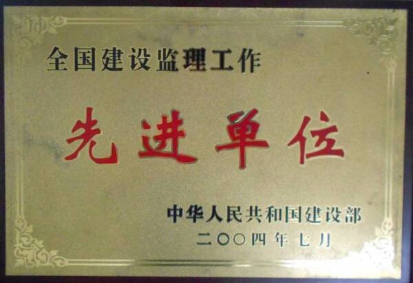 2004年被評(píng)為全國(guó)先進(jìn)工程建設(shè)監(jiān)理單位榮譽(yù)證書(shū)