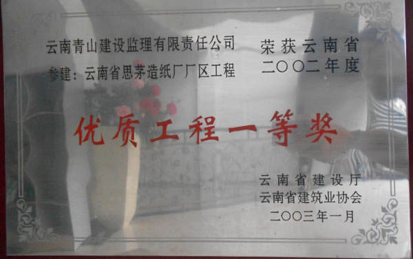 2003年云南省建設(shè)廳評(píng)為云南省先進(jìn)工程建設(shè)監(jiān)理單位榮譽(yù)