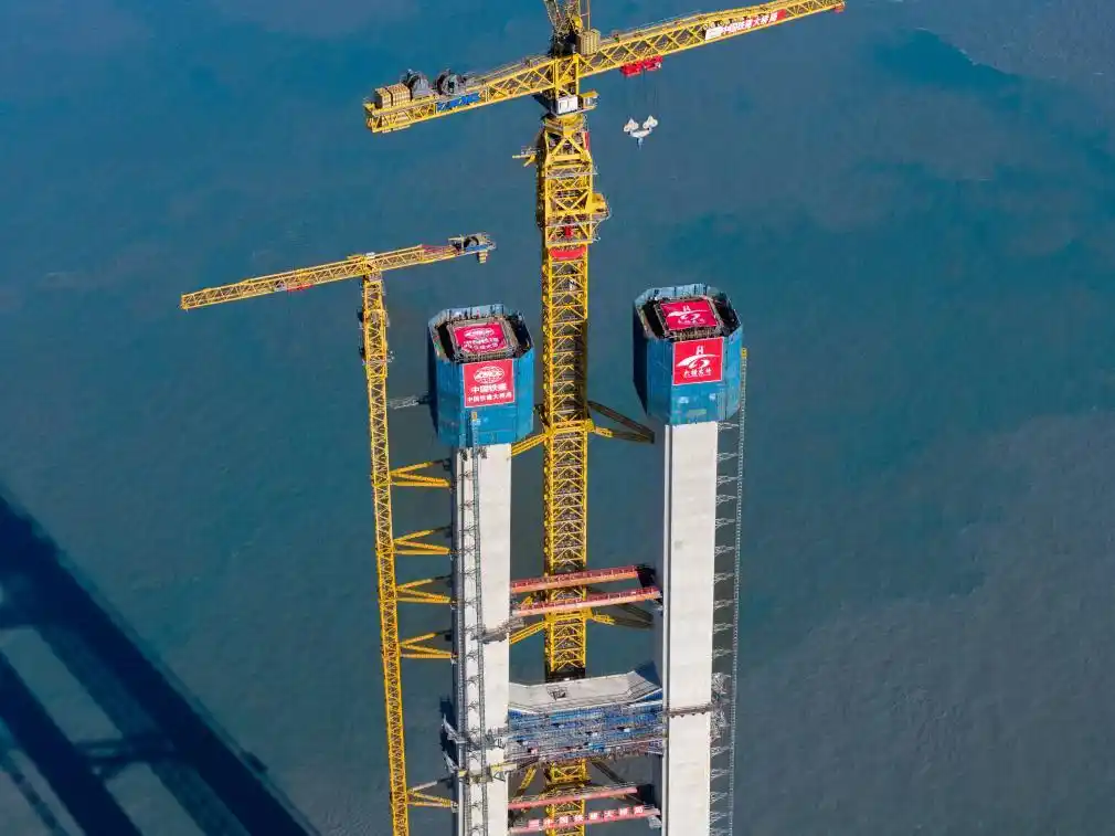 自入駐項目以來,徐工群塔以高效“協(xié)同作業(yè)模式",始終保持 “滿弓” 狀態(tài),大幅提升在有限海上作業(yè)窗口期內的施工效率與可靠性,見證著大橋主塔節(jié)節(jié)攀升。