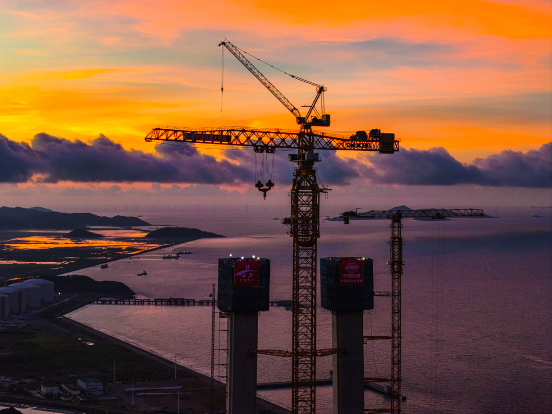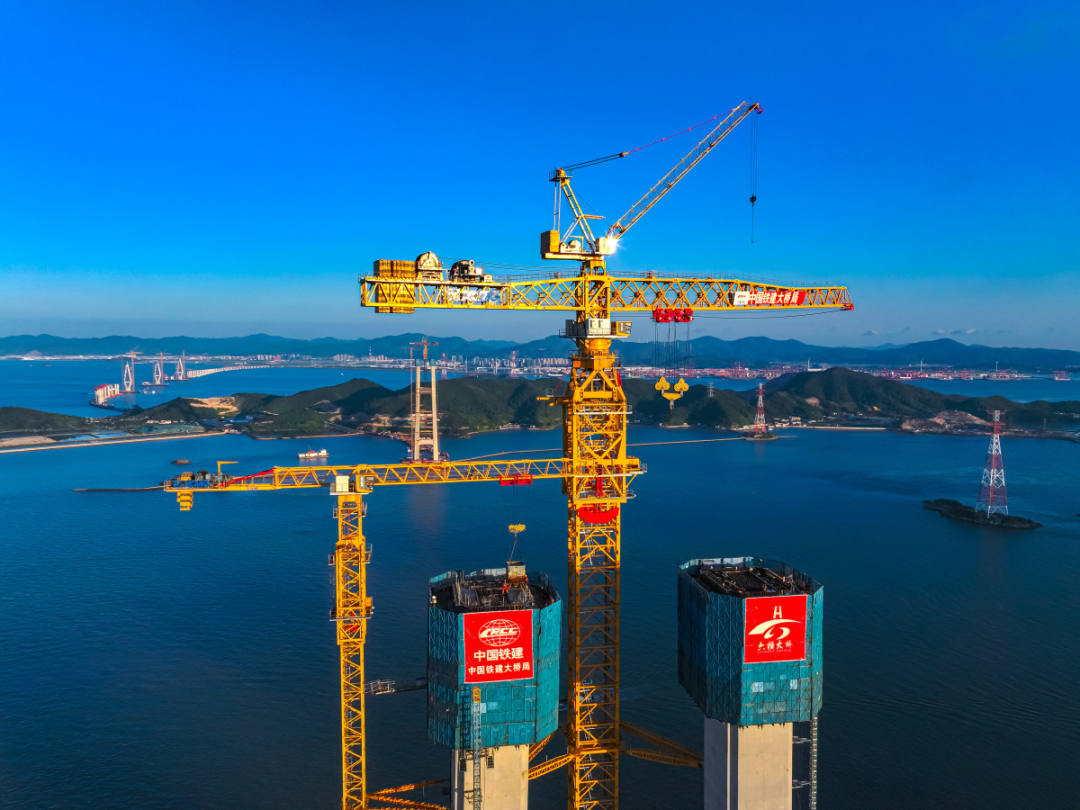 在封頂作業(yè)中,徐工塔機將百噸構件以毫米級精度吊裝至200余米高空,硬剛10級海風,創(chuàng)造了海上橋梁建設新紀錄。多臺群塔協(xié)同作業(yè),創(chuàng)造性攻克"高空精度、抗風穩(wěn)性、吊裝效率"三大世界級施工難題,展現了中國裝備的卓越性能。