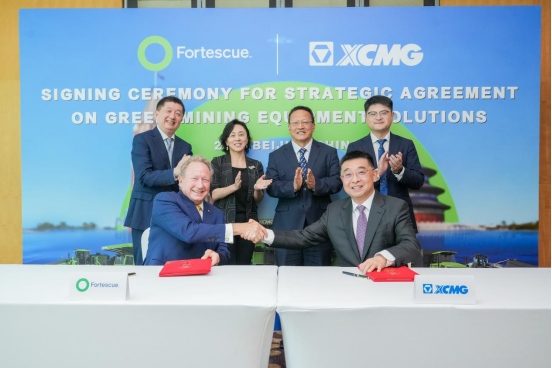 近日,徐工集團(tuán)與澳大利亞福德士河集團(tuán)(Fortescue)在北京隆重舉行綠色采礦設(shè)備解決方案戰(zhàn)略合作協(xié)議簽署儀式。徐工集團(tuán)、徐工機(jī)械董事長楊東升與福德士河集團(tuán)執(zhí)行董事長安德魯·福瑞斯特博士共同簽署新能源礦山設(shè)備供貨合約。徐工將在2028至2030年期間為福德士河集團(tuán)提供150臺至200臺240噸純電動礦卡。這是迄今為止中國簽訂的最大綠色礦山機(jī)械出口訂單。