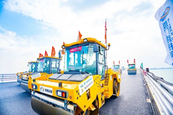 翔安大橋在建設(shè)中既要克服海上風(fēng)浪大、潮差高、巖層強(qiáng)度高、跨越生態(tài)保護(hù)區(qū)等困難,又要兼顧綠色環(huán)保;要在這種復(fù)雜的環(huán)境中保證施工質(zhì)量,對設(shè)備和施工技術(shù)的選擇就顯得尤為重要。徐工數(shù)字化智能施工集群憑借其智能化、高精度、高效率等顯著優(yōu)勢,成功克服了傳統(tǒng)施工方式難以應(yīng)對的諸多難題,可精準(zhǔn)適配翔安大橋的橋面鋪裝工作。