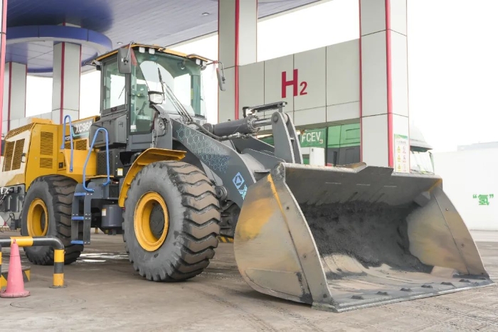徐工氫能電動裝載機,以氫氣作為動力能源,在燃料電池系統(tǒng)與氧氣發(fā)生化學(xué)反應(yīng)產(chǎn)生電流,產(chǎn)物僅有電、熱量與水,有效減少燃油造成的空氣污染等問題,實現(xiàn)零碳排放。