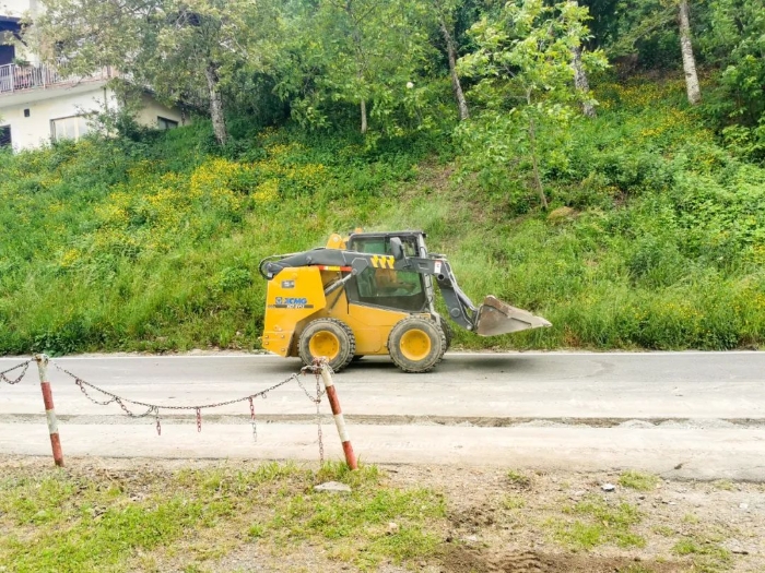 依山而建是這里鄉(xiāng)村道路最顯著的特點,蜿蜒曲折、狹窄處僅能容納單臺車輛行駛,就市政施工來說相較市區(qū)道路工作量可不小,需要一機多能的工程機械縮小作業(yè)面占用和節(jié)省作業(yè)時間,這就給多才多藝的徐工滑移裝載機帶來了一展拳腳的舞臺。