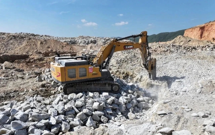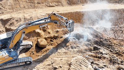 這邊巖石硬的很,后期破碎特別吃力,在徐工工作人員的推薦下,我們嘗試了徐工大噸位挖掘機(jī),果真像雞蛋碰石頭,一碰就碎,于是后面我們陸陸續(xù)續(xù)都置換成了徐工。
