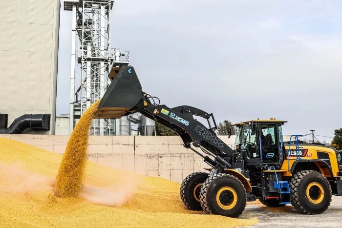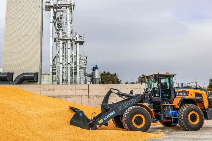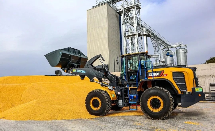 眼下,在歐洲某農(nóng)產(chǎn)品加工廠,徐工XC968-EV純電動裝載機正迅速揮動大臂,翻動室外晾曬的谷物。