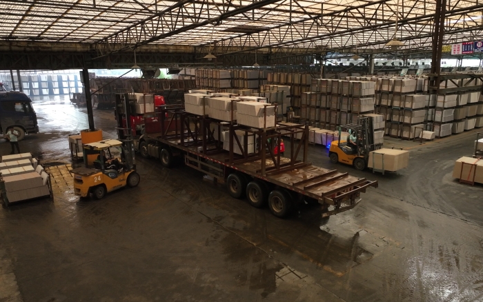 在華南區(qū)某大型陶瓷廠內(nèi),十幾臺徐工重載高壓鋰電叉車正在進行繁忙的搬運裝卸工作,為即將到來的市場旺季做好準備。