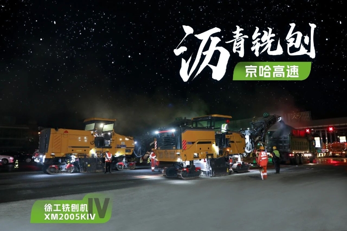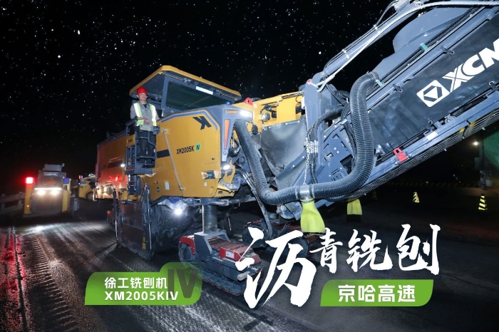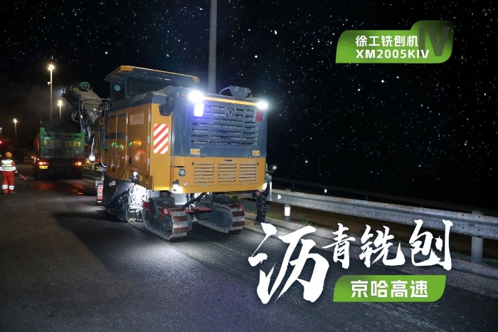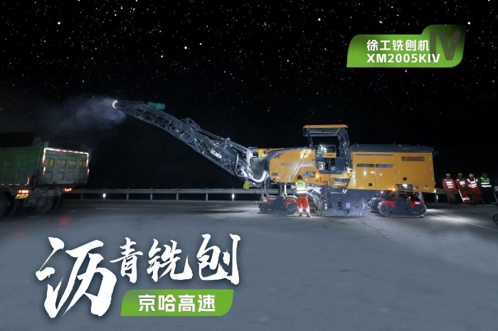 此次施工項目為京哈高速的路面改擴建工程,銑刨深度5cm,銑刨速度25m/min。由于北京地區(qū)日間車流量大,交通壓力較大,因此施工方選擇在夜間施工,日間恢復行車,盡量避免施工給交通帶來影響。由于夜間施工更加考驗施工設備的穩(wěn)定性、施工質(zhì)量的可靠性,施工方選擇了兩臺徐工兩米銑刨機作為本次高速公路養(yǎng)護工程的銑刨設備,分別為XM2005KIV和XM200KII,同時進行銑刨作業(yè),并肩作戰(zhàn),按下施工進度快進鍵。