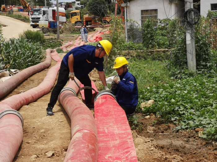 面對(duì)嚴(yán)峻的救援形勢(shì),7月12日到達(dá)現(xiàn)場(chǎng)后,救援隊(duì)伍便緊鑼密鼓開(kāi)始整備,商議排水方案、調(diào)試車(chē)輛、鋪設(shè)水帶、檢查管路……為搶抓救援時(shí)間,在制定了嚴(yán)謹(jǐn)細(xì)致的排水方案后,現(xiàn)場(chǎng)采用“兩班倒”的方式,在近40℃的高溫下24小時(shí)不停機(jī)作業(yè)。