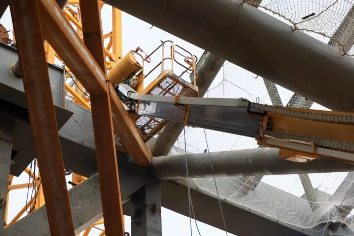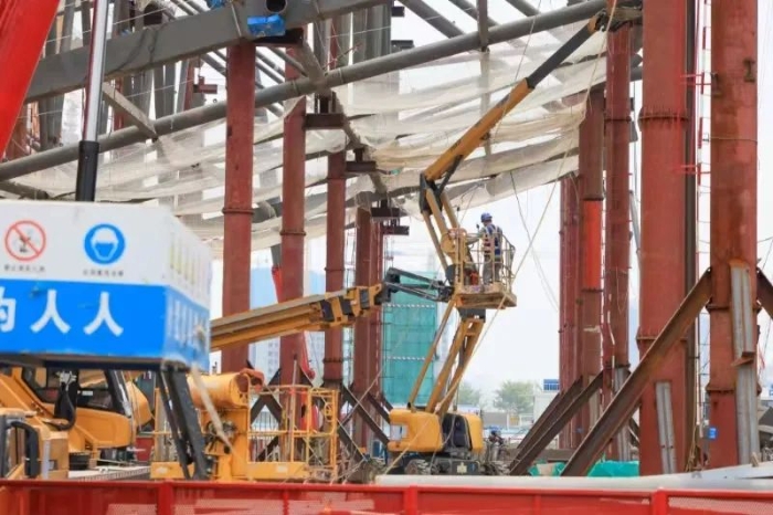 忙碌的工地上,隨處可見“徐工金”辛勞的身影。此次參與施工的有四十余臺(tái)徐工高空作業(yè)平臺(tái),高度從22米到40米不等,主要負(fù)責(zé)場(chǎng)館鋼結(jié)構(gòu)的安裝工作。
