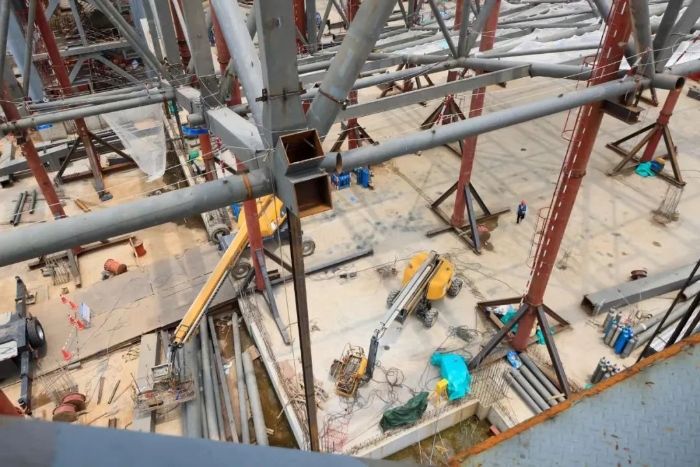 深圳前海,全球規(guī)模最大、國(guó)內(nèi)落差最高的室內(nèi)滑雪場(chǎng)——華發(fā)冰雪世界滑雪場(chǎng),正在如火如荼的施工中。