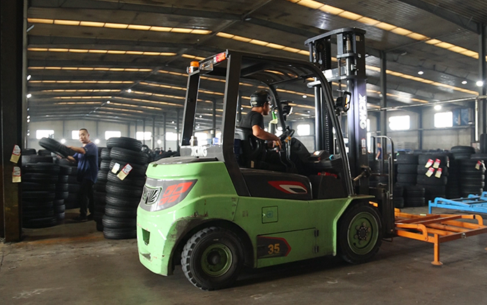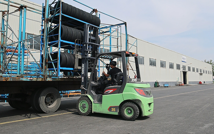 徐工孔雀系列電動平衡重叉車,具備精準的操控性,能夠在狹窄的輪胎生產車間內靈活穿梭,輕松完成各種搬運任務。無論是搬運原材料還是成品輪胎,都能做到高效準確,大大提高了生產效率。