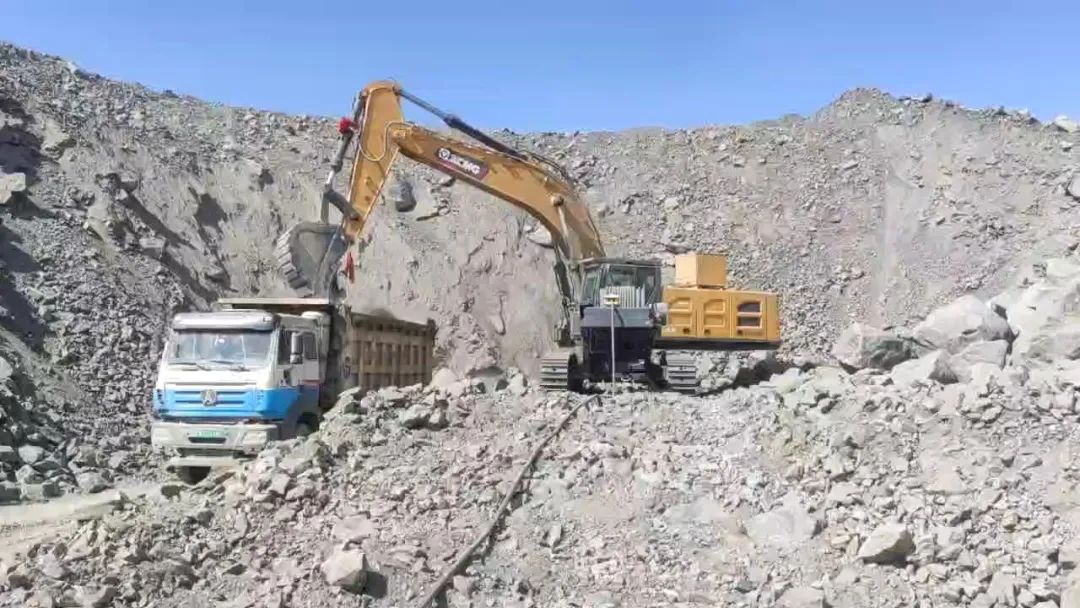 在內(nèi)蒙古某鐵礦施工現(xiàn)場(chǎng),機(jī)器轟鳴聲回繞于空闊寂寥的山巔。徐工XE600EK正揮舞著堅(jiān)實(shí)的臂膀,和寬體自卸車配合默契地忙碌著,一張一弛間彰顯出王者的風(fēng)范。