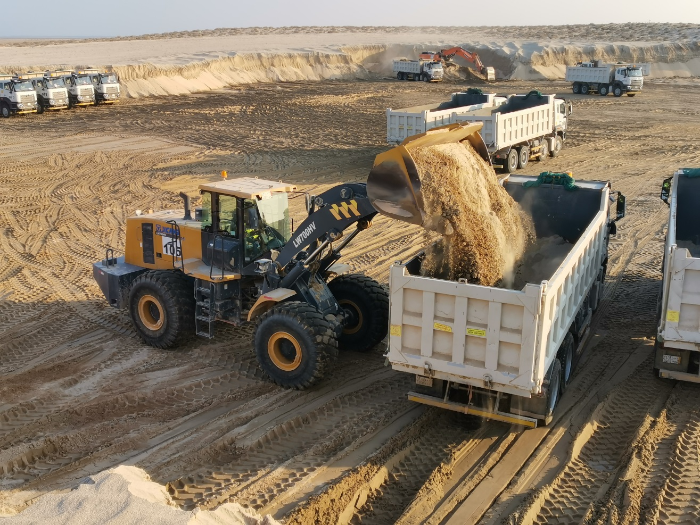 亞洲某國,新建大型公園建設(shè)現(xiàn)場(chǎng),徐工LW700HV與ZL50GN相互配合高效進(jìn)行著土方作業(yè)。2020年,客戶開始采購徐工設(shè)備,對(duì)ZL50的作業(yè)性能與可靠性非常滿意,隨著業(yè)務(wù)量的不斷增加,客戶開始考慮大噸位產(chǎn)品。經(jīng)過當(dāng)?shù)匦旃やN售的全力推薦,客戶加購了徐工LW700HV裝載機(jī),該產(chǎn)品也已優(yōu)異表現(xiàn)贏得客戶的贊賞。配合自卸車,對(duì)密度約1.8t/m3的沙土進(jìn)行轉(zhuǎn)運(yùn)作業(yè),徐工LW700HV搭配4.5m3鏟斗作業(yè)起來效率驚人。