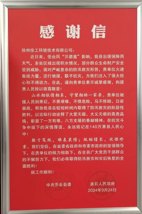 “此行是專門來感謝徐工在蕭縣防汛救災(zāi)中的無私奉獻(xiàn)?!?/strong>董局長表示,“你們的行動不僅體現(xiàn)了徐工的社會責(zé)任感,更讓我們感受到了‘防汛救災(zāi)顯大愛 風(fēng)雨同舟見真情’的深刻內(nèi)涵。我們特地做了錦旗和感謝信,來表達(dá)我們的謝意?!?/span>