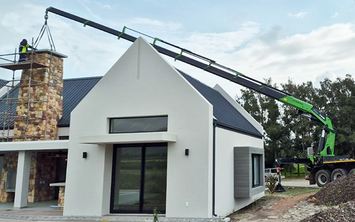 在海外某建筑工地現(xiàn)場可以看到,徐工GSQZ860折疊臂隨車起重機(jī)加裝兩節(jié)手動臂,輕松跨越建筑物二樓復(fù)雜的鋼結(jié)構(gòu),完成了高處的物料轉(zhuǎn)運(yùn)作業(yè),優(yōu)越跨障能力和穩(wěn)定作業(yè)表現(xiàn)獲得了現(xiàn)場施工人員的認(rèn)可和好評。