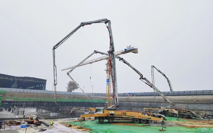 徐工大米數(shù)泵車在此次施工中的表現(xiàn)令人矚目。6節(jié)臂臂架靈活伸展,精準(zhǔn)定位,澆灌均勻且高效。匹配大馬力發(fā)動機(jī),泵送效率提升27%,大大縮短施工周期,為項(xiàng)目快速推進(jìn)提供了有力保障。