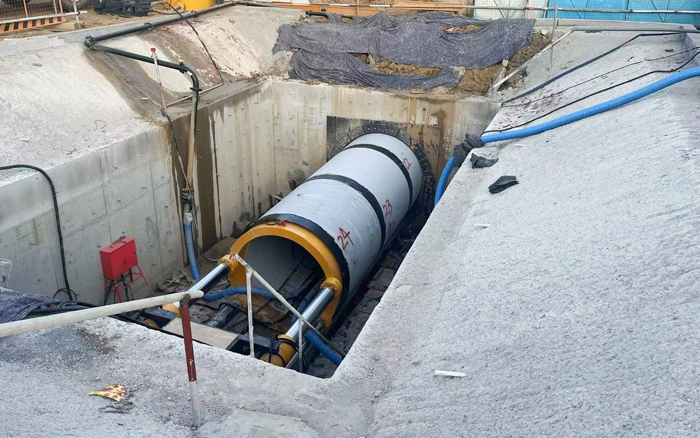 本次頂管穿越巖層為強風(fēng)化片麻巖層,與上覆砂層最小厚度僅為1m,頂進時有較大塌方風(fēng)險。為了確保頂管施工安全,客戶自行采購了國內(nèi)先進的徐工XDN1800-R“泥水平衡”巖石頂管設(shè)備。
