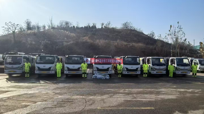 12月6日,在山東濟南交車現(xiàn)場,車輛整齊排列,徐工向當(dāng)?shù)亟桓读藘煞N不同車型的后裝壓縮式垃圾車,這些車輛將協(xié)同作業(yè),肩負起濟南市生活垃圾的收集和轉(zhuǎn)運工作。