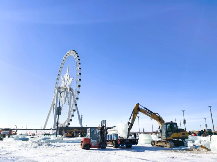 本屆哈爾濱冰雪大世界以“冰雪同夢 亞洲同心”為主題,園區(qū)設(shè)計和建設(shè)充分融入2025年第九屆亞冬會元素,打造一座更加氣勢恢宏、美輪美奐的冰雪主題樂園。在這個以冰雪鑄造的王國中,徐工中小型挖掘機負責(zé)運輸冰塊的重要工作,展現(xiàn)了它們力大無窮的一面。