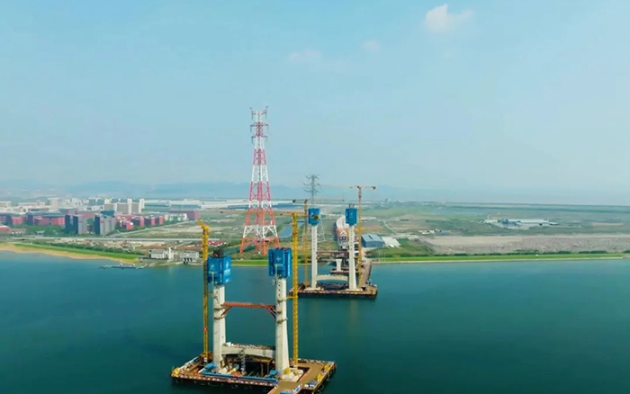 該項目建設規(guī)模大,結構類型多,科技含量高。全線海域橋梁長度約9公里,海上作業(yè)工程量大,項目施工區(qū)域內(nèi)氣象、水文、地質(zhì)條件復雜,同時還面臨航運繁忙,海上施工組織難度大等挑戰(zhàn)。