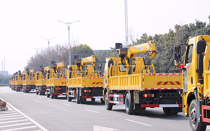 一輛輛隨車起重機緩緩駛出工廠,它們將奔赴各個城市建設(shè)項目現(xiàn)場,成為城市建設(shè)的得力 “干將”。這批隨車起重機的投入使用,將為城市建設(shè)帶來顯著的推動作用。在城市基礎(chǔ)設(shè)施建設(shè)中,它們能夠高效地搬運和安裝大型構(gòu)件,加快工程進度;在城市改造項目里,靈活的操作性能讓其在狹窄空間內(nèi)也能施展拳腳,助力城市面貌煥然一新。