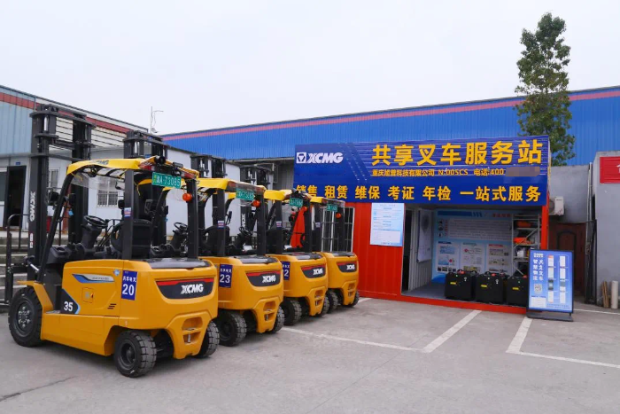 在重慶某大型物流園區(qū),累計超120臺徐工新能源共享叉車被投入使用。這些共享叉車24小時待命,園區(qū)內(nèi)的服務站里不時有老板、叉車司機進行充換電和現(xiàn)場掃碼解鎖。