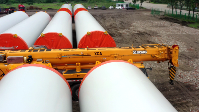 在繁忙的港口,長40米、重100噸的風(fēng)力發(fā)電塔筒擺放整齊,等待著一次關(guān)鍵的騰挪,吊裝空間局促——塔筒擺放距離較近,蕩距空間嚴(yán)重受限,這是對起重機性能與操控的極致考驗。徐工G2代起重機XCA200G8-1從容入場,以實力宣告:空間,絕非限制。