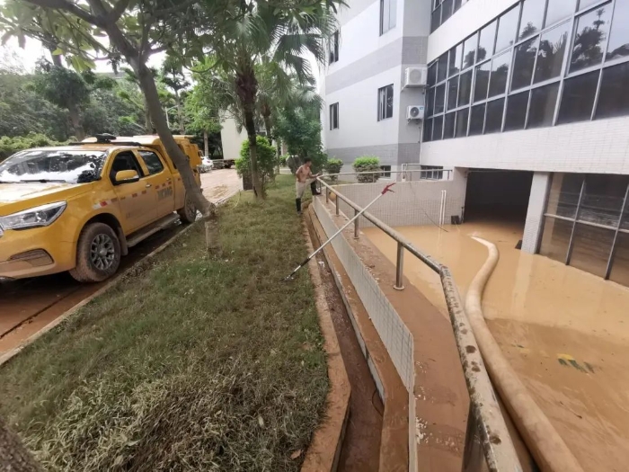 懷集縣人民檢察院地下車庫遭大量積水倒灌,水位迅速上漲,停放車輛和設(shè)施面臨嚴(yán)重威脅。由于地下車庫空間狹窄,大型救援車輛難以施展身手,排澇工作陷入困境。