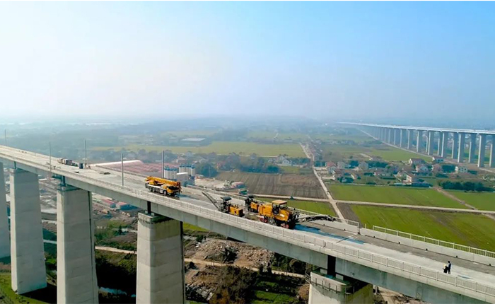 通過(guò)毫米級(jí)精度控制技術(shù),實(shí)現(xiàn)了復(fù)雜橋區(qū)多場(chǎng)景施工的高效協(xié)同,有效提升了橋面平整度與施工效率,確保了全球最大跨度斜拉橋的鋪裝質(zhì)量。
