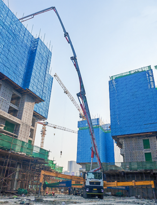 在高鐵新區(qū)超高層項目中,258 米地標建筑核心筒澆筑是關鍵環(huán)節(jié),對泵車的覆蓋能力和精準度要求嚴苛。徐工72米泵車以71.1 米有效長度,輕松完成了這一艱巨任務。智能防傾翻技術、智能臂架技術等充分展現(xiàn)了 “中國高度” 背后的精準實力。