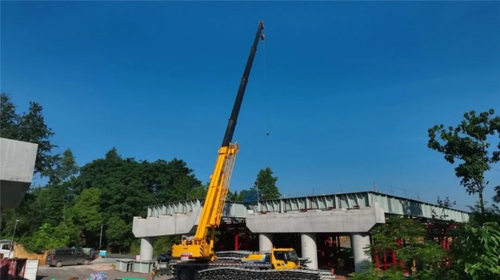 湖北通修高速公路建設現(xiàn)場,徐工G2代50噸新能源起重機正展露鋒芒。14米長、重達1噸的橋梁豎梁凌空而起,500斤橫梁于視野盲區(qū)精準對位——這是對起重機微動性與操控性的極限考驗。