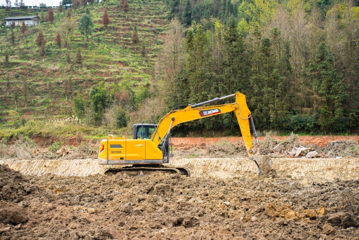 “水田黏土多、修坡量大,徐工設(shè)備的施工效率顯著?!必?fù)責(zé)人介紹稱,徐工發(fā)動(dòng)機(jī)功率大,干活有勁,而且平地性能好,刷坡、平地的速度比同噸級(jí)產(chǎn)品快10%以上。