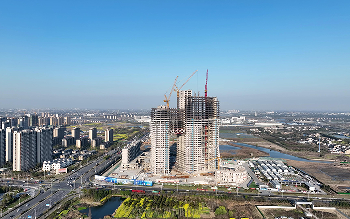 XGL630-50S憑借高效、精準(zhǔn)的吊裝性能、出色的操控微動性,克服施工現(xiàn)場扭轉(zhuǎn)不規(guī)則、樓板不連續(xù)、尺寸突變、構(gòu)件間斷等問題,高效完成樓承板、鋼結(jié)構(gòu)和核心筒主體結(jié)構(gòu)等建筑材料的吊裝重任,給江南煙雨帶來了一抹溫暖亮麗的色彩。