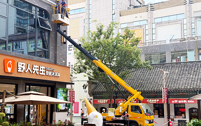 作為藍牌車型,GKS28 輕松穿梭于狹窄的街區(qū)巷道,無需復雜通行審批,到場后迅速進入作業(yè)狀態(tài)。施工地周邊商鋪林立、行人如梭,施工區(qū)域被密集人流環(huán)繞,對設備的靈活性與安全性提出極高要求。