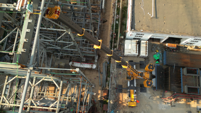 面對如此復(fù)雜的空間限制,經(jīng)驗(yàn)豐富的孫機(jī)長果斷啟用了XCA750K8-1的全配重中位主臂工況。