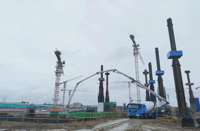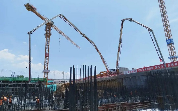 在南京北站核心區(qū)澆筑現(xiàn)場,徐工72米泵車以71.2米的布料高度精準(zhǔn)覆蓋站房頂層作業(yè)面,連續(xù)48小時作業(yè)“零故障”的紀(jì)錄,完美應(yīng)對穹頂弧形結(jié)構(gòu)與站臺層復(fù)雜節(jié)點(diǎn)的澆筑需求。