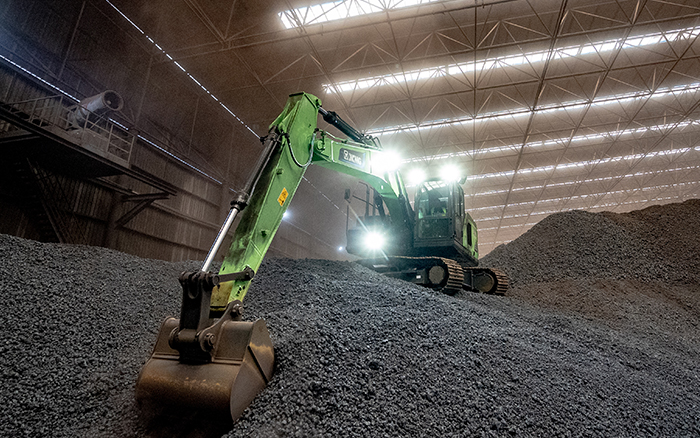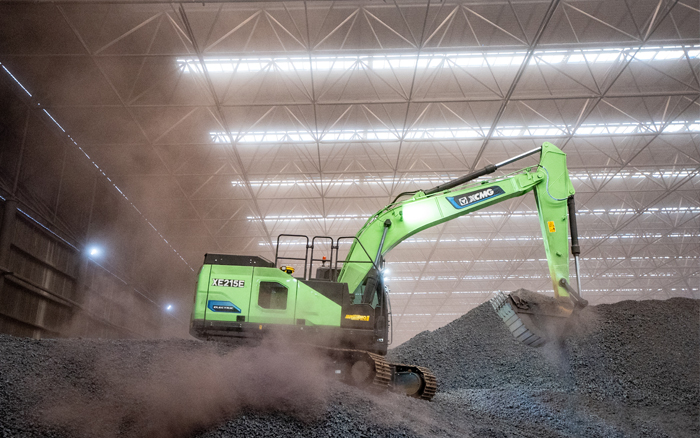 在封閉的廠房中,XE215EV純電動挖掘機(jī)正對鋼鐵原料礦石進(jìn)行挖掘、搬運(yùn)作業(yè),鋼鐵冶煉廠屬于重灰塵環(huán)境,而XE215EV卻練就了一身“超級本領(lǐng)”。