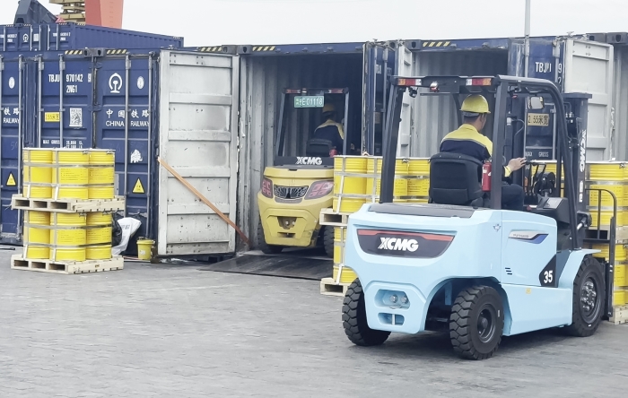而徐工孔雀系列高壓鋰電重載叉車,則以 “強(qiáng)勁有力” 的特質(zhì)扛起 “重載先鋒” 大旗。該系列叉車性能強(qiáng)悍,其中5-10 噸大噸位型號(hào)可輕松應(yīng)對集裝箱搬運(yùn)需求,面對沉重的集裝箱貨物,依舊能保持穩(wěn)定高效的作業(yè)狀態(tài),實(shí)現(xiàn)貨物快速轉(zhuǎn)移;小噸位型號(hào)則可靈活參與進(jìn)箱作業(yè),與鯤鵬系列形成互補(bǔ)。