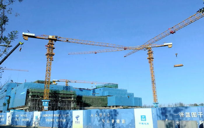 這片建筑群是雄安新區(qū)中國(guó)電信智慧城市產(chǎn)業(yè)園項(xiàng)目, 徐工S系列塔機(jī)奮戰(zhàn)在施工一線,見(jiàn)證雄安崛起。