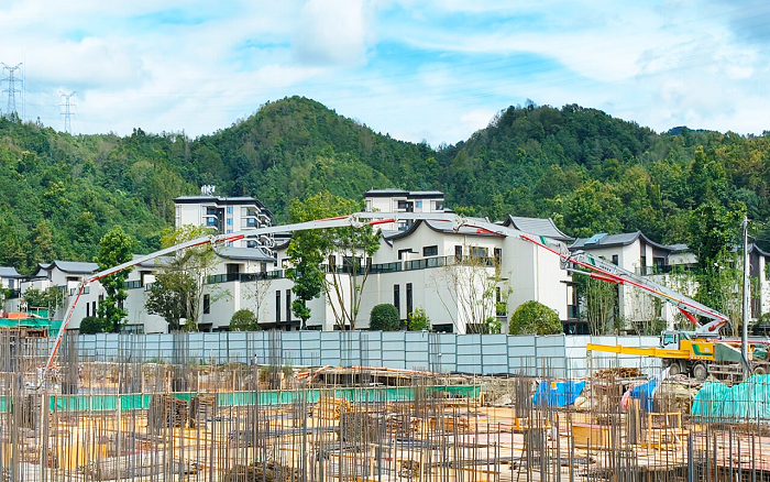 近日,在云南省保山市騰沖縣熱海拾光項目建設現場,徐工HB65V泵車以卓越性能承擔核心施工任務。