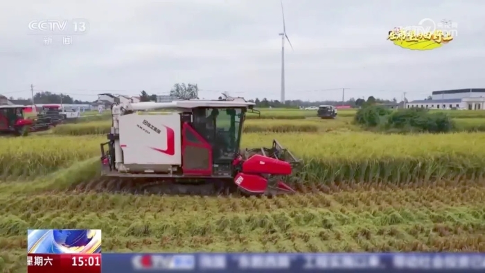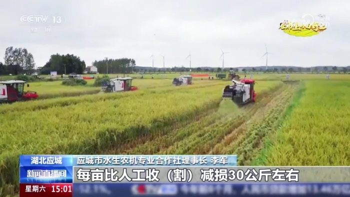 9月20日,中央電視臺新聞?lì)l道《新聞直播間》“在希望的田野上”欄目將鏡頭對準(zhǔn)湖北應(yīng)城,報(bào)道了八臺徐工XR720履帶式谷物聯(lián)合收獲機(jī)在當(dāng)?shù)亻_展大規(guī)模糯稻收割的豐收盛景——履帶滾滾,金黃的稻穗迅速被吞入機(jī)器,頃刻間完成收割、脫粒、清選等一系列作業(yè),顆顆飽滿的籽粒穩(wěn)穩(wěn)落入糧倉。