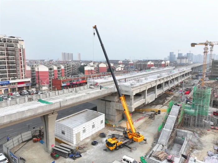 在華中某軌道交通項(xiàng)目現(xiàn)場(chǎng),徐工G2代XCT50G5-1輪式起重機(jī)以40米主臂工況,穩(wěn)穩(wěn)將兩根長(zhǎng)25米、單重1.5噸的軌道板吊運(yùn)至高架橋基。整個(gè)吊裝過(guò)程精準(zhǔn)、平穩(wěn)、動(dòng)作流暢,憑借搭載的吊鉤防擺技術(shù),大幅簡(jiǎn)化了操作難度,提升了吊裝平穩(wěn)性與安全性,成為軌道鋪設(shè)中的關(guān)鍵力量。