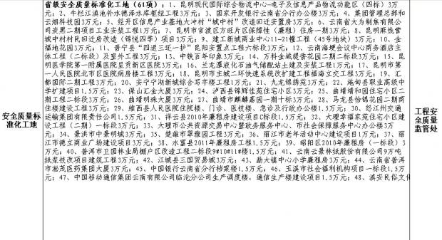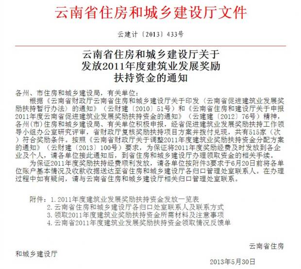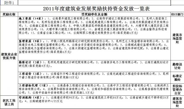 2011年度云南省促進(jìn)建筑業(yè)發(fā)展獎勵